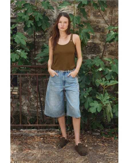 Nouveauté Aperçu rapide Bermuda en jeans large... -Bermuda en jean large -Ceinture décorative nouable -Fermeture par bouton et par zip sur le devant -Poches plaquées sur le devant et derrière... Liste de souhaits Panier 55,00 €