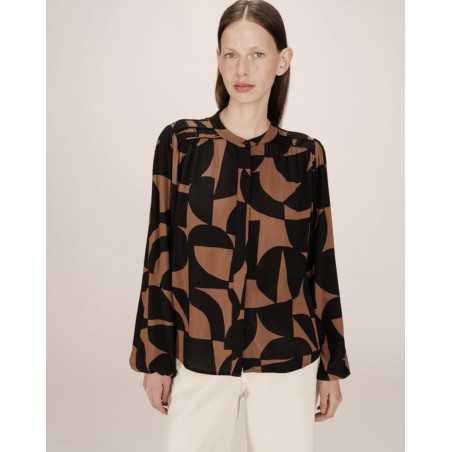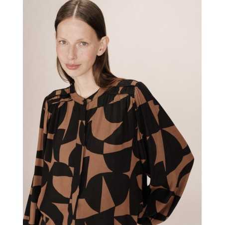 SORPRESA est une blouse à manches longues, imprimée dans un motif géométrique bicolore, avec une patte de boutonnage cachée sur le devant et un détail de passepoils et fronces sur le devant et à l'empiècement dos.- Blouse- Motif géométrique bicolore - Coupe droite- Manches longues avec poignets élastiqués- Col rond- Ouverture avec patte de boutonnage cachée sur le devant - Détail de passepoil et de fronces aux épaules et à l'empiècement du dos
