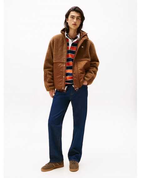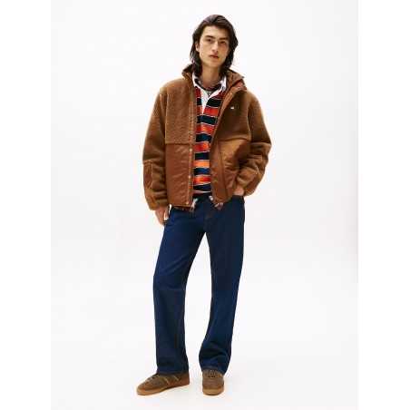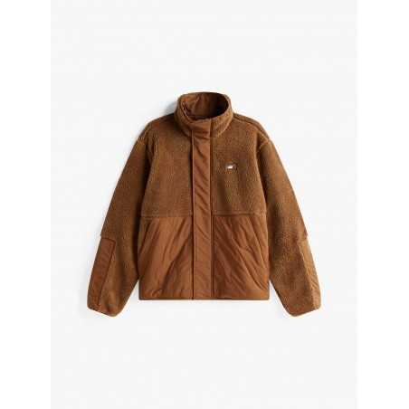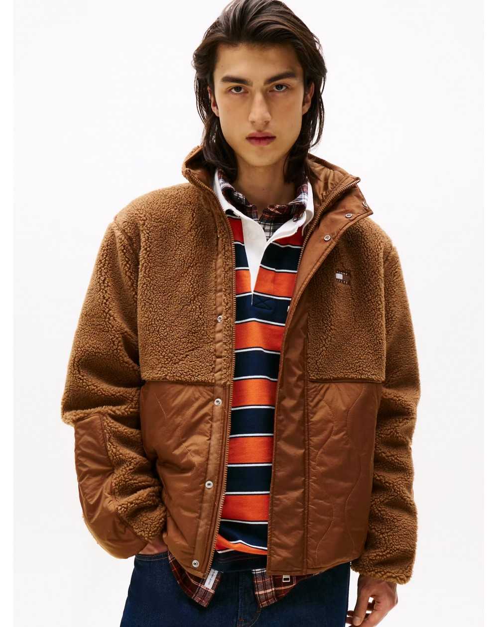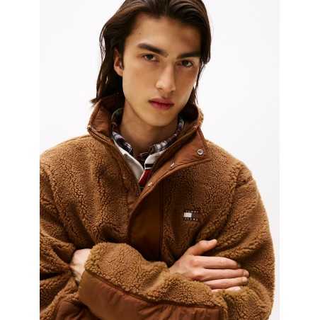 Blouson teddy marron, chaude et décontractée, pensée pour la collection Automne 2025. Confectionnée en polyester recyclé, elle combine confort, style sportswear et démarche responsable. Sa coupe relaxed et sa texture douce en font un essentiel du vestiaire casual.