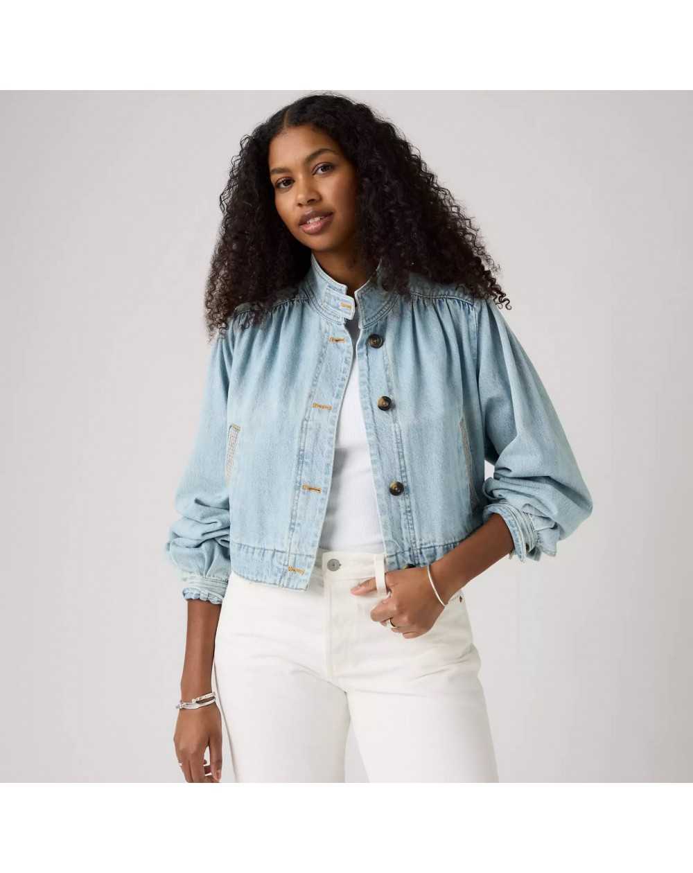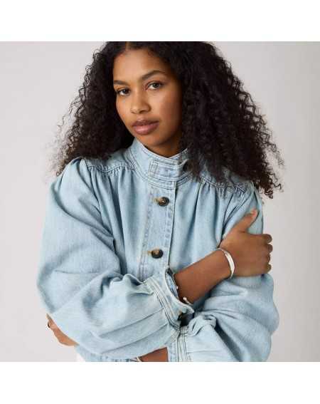 Veste courte en denim au style pratique et élégant. Sa coupe décontractée et ses détails classiques en font une pièce facile à porter au quotidien.