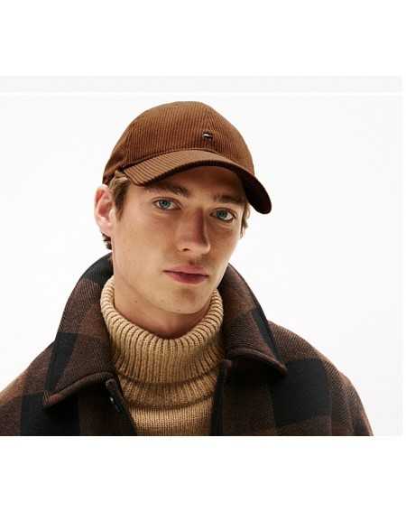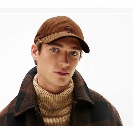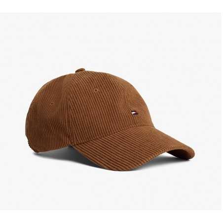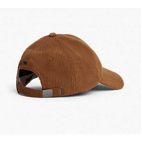 Cette casquette de baseball classique est revisitée en velours côtelé texturé. Sa structure à six pans présente un drapeau brodé au centre.