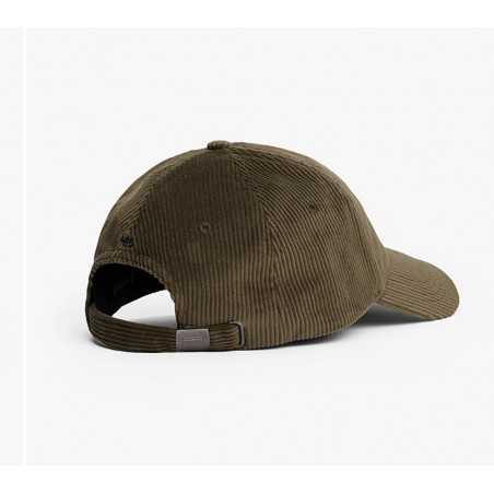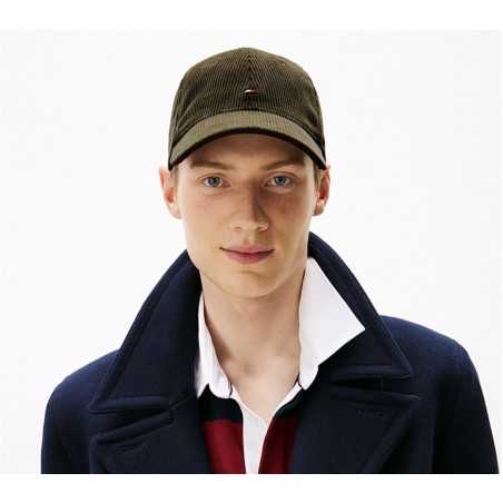 Cette casquette de baseball classique est revisitée en velours côtelé texturé. Sa structure à six pans présente un drapeau brodé au centre.