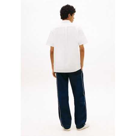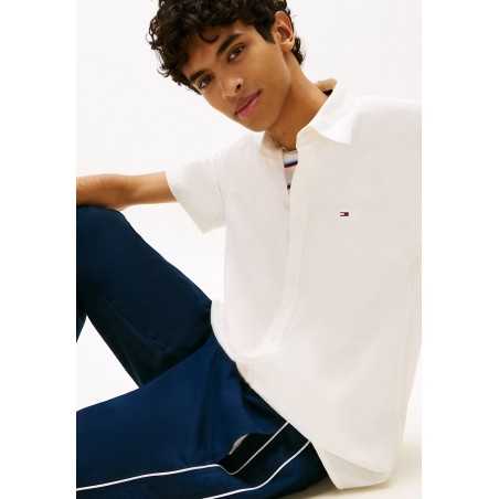 • Mélange de coton régénéré et Better Cotton avec élasthanne, tissu seersucker léger, respirant et légèrement texturé.