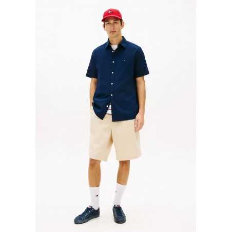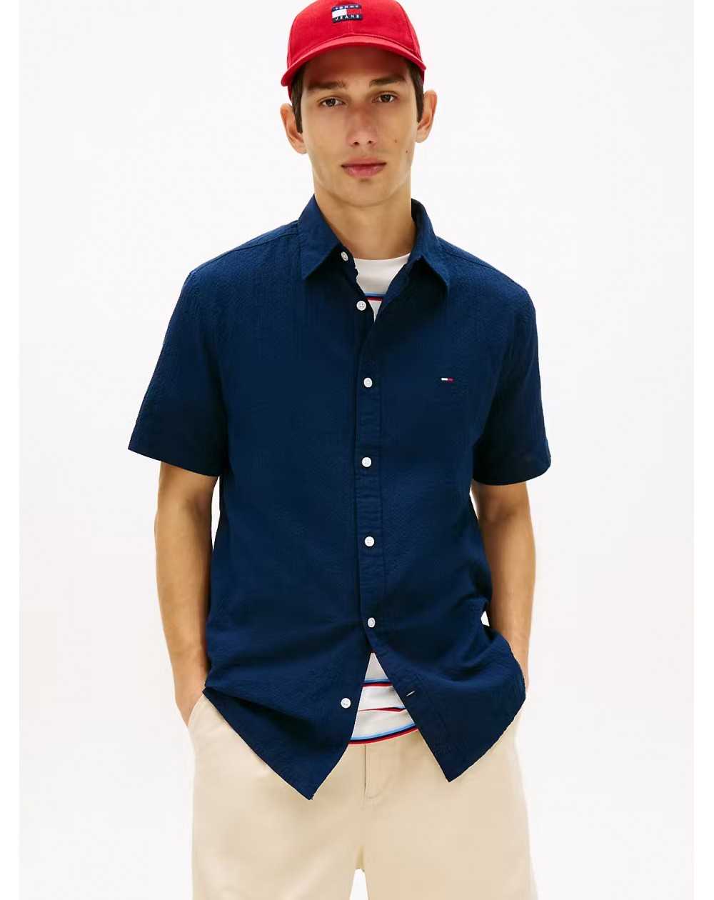 • Mélange de coton régénéré et Better Cotton avec élasthanne, tissu seersucker léger, respirant et légèrement texturé.