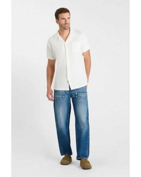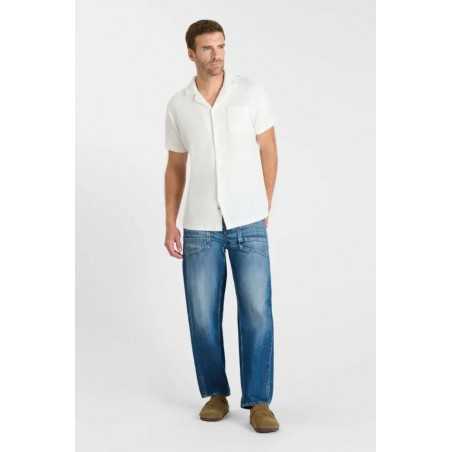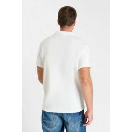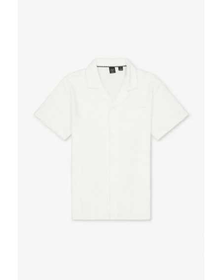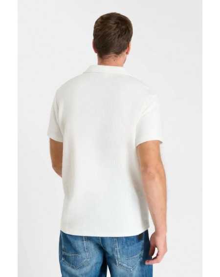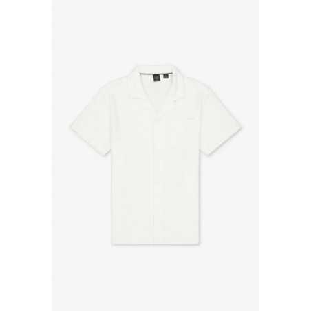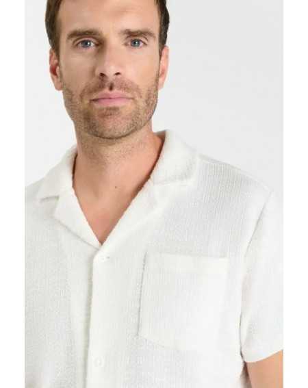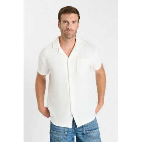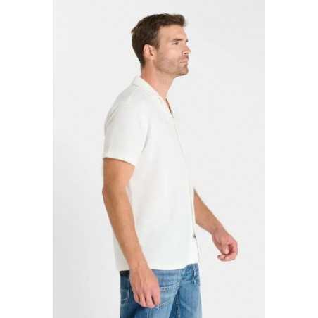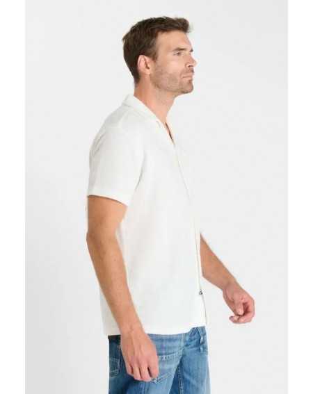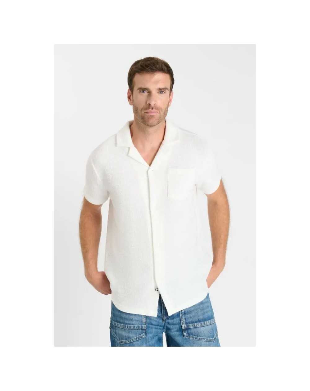 Chemise Timon blanche en maille, à l’allure moderne et estivale. Son col cubain et ses manches courtes apportent une touche city facile à porter au quotidien.