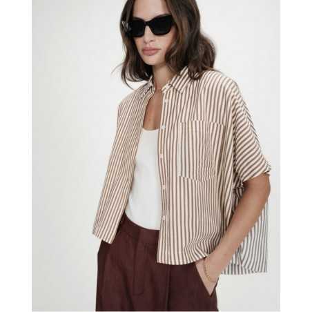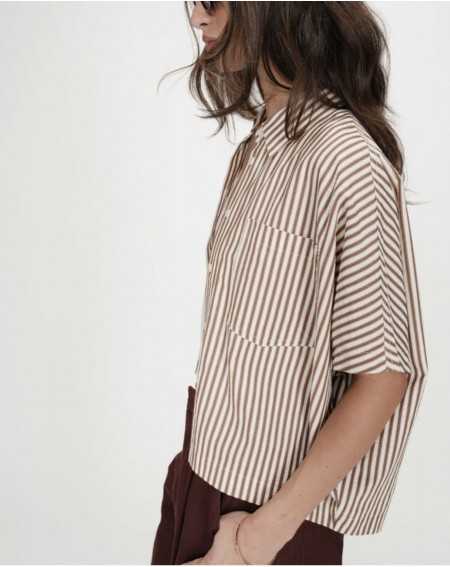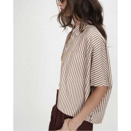 VERCIA est une chemise à rayures à la coupe oversize, manches courtes.Son col classique et sa poche plaquée sur la poitrine gauche lui donnent une allure cool et décontractée.