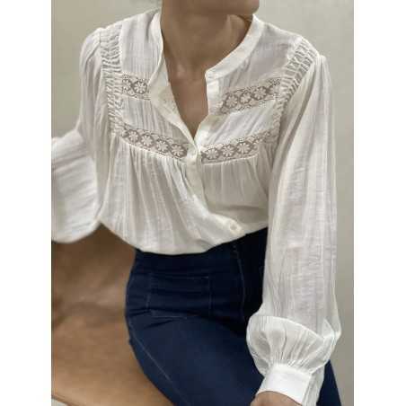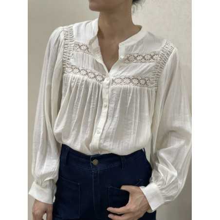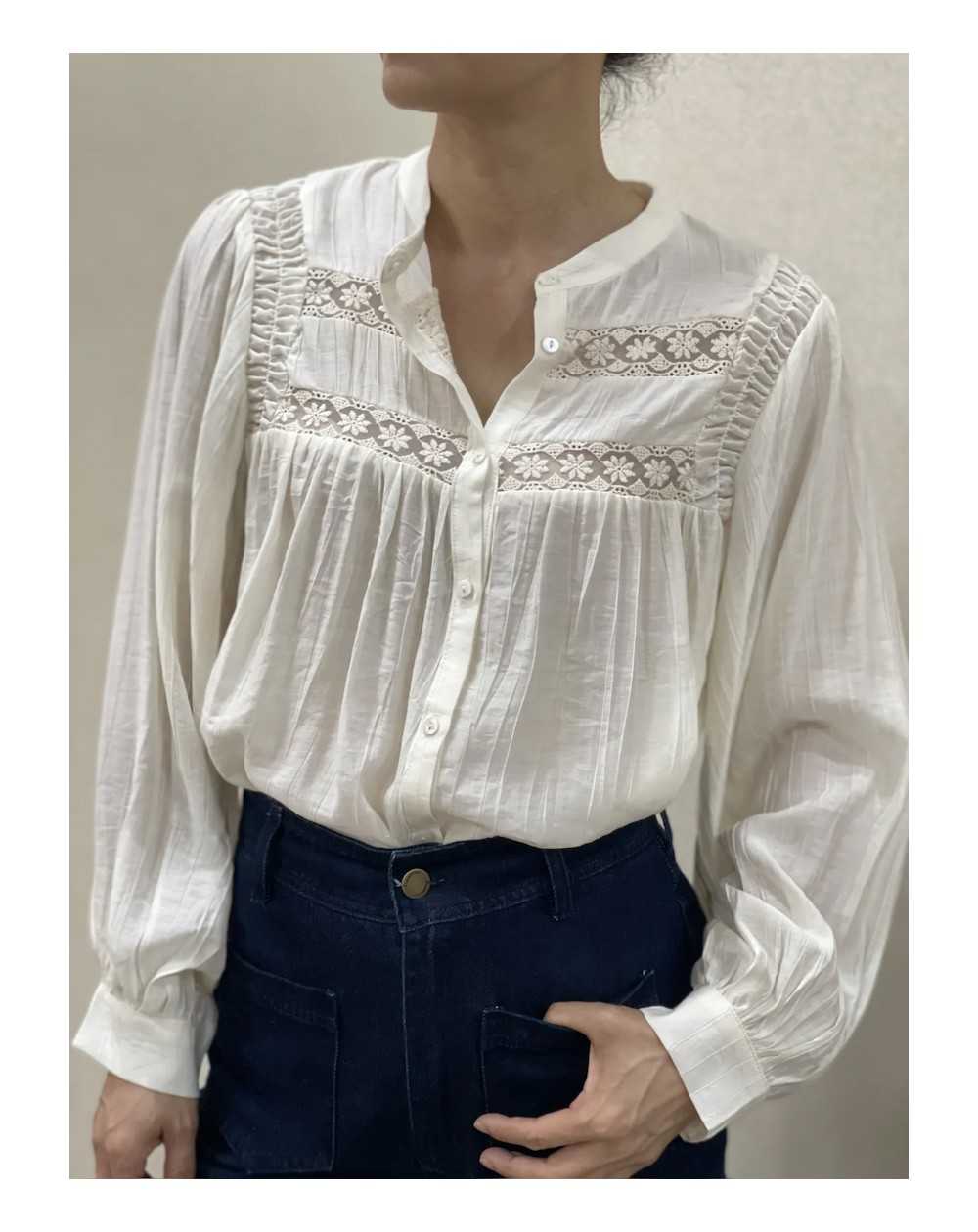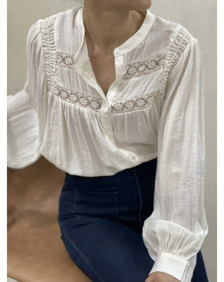 - Chemise brodée manches ballon avec un col mao.