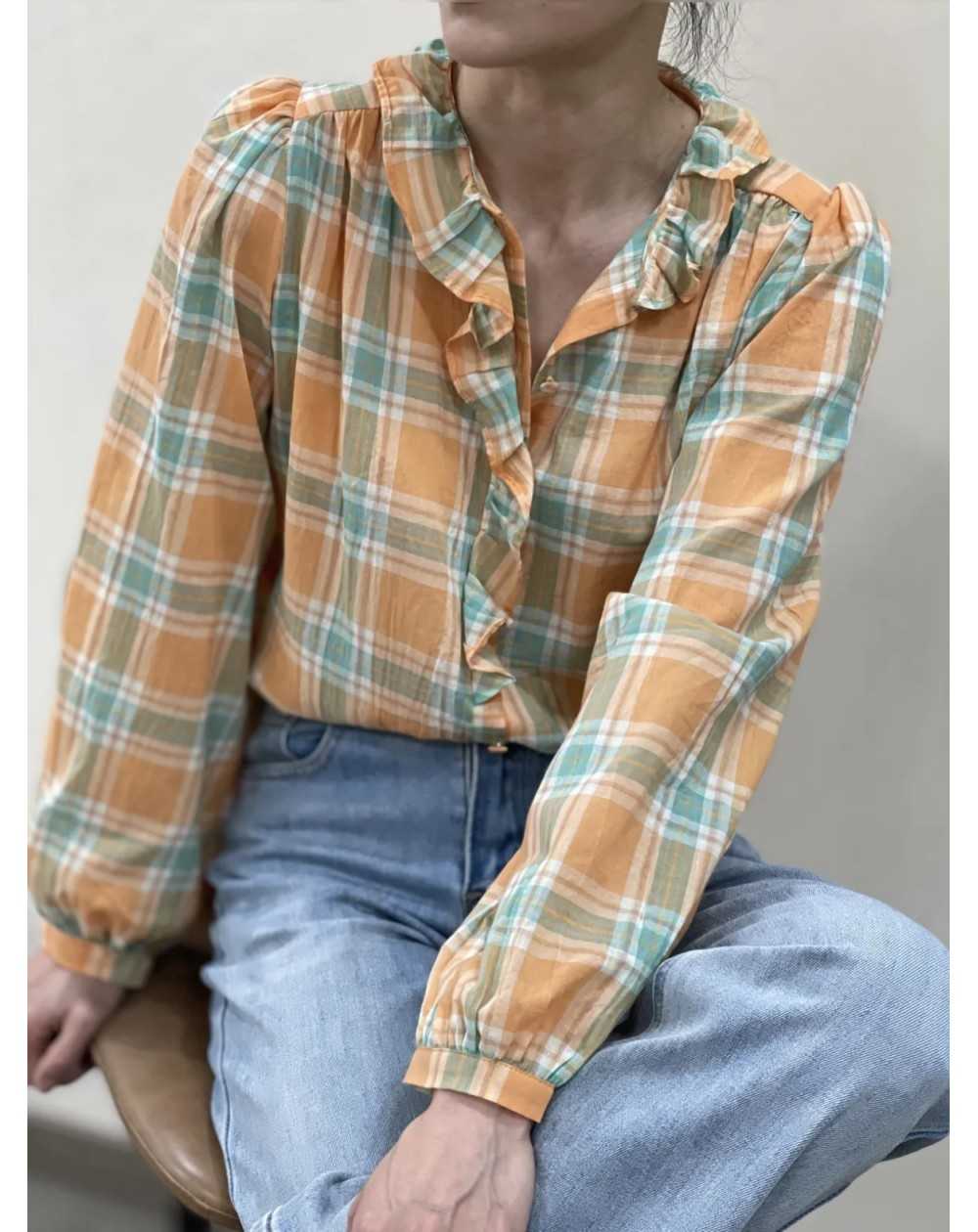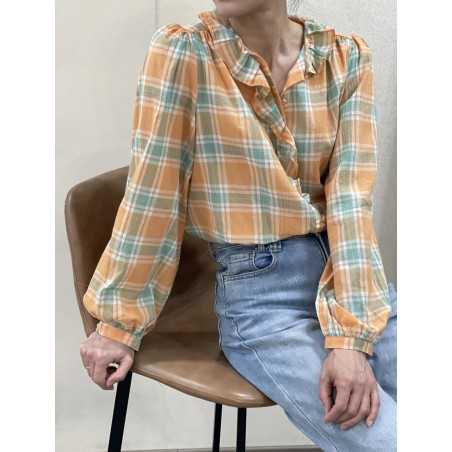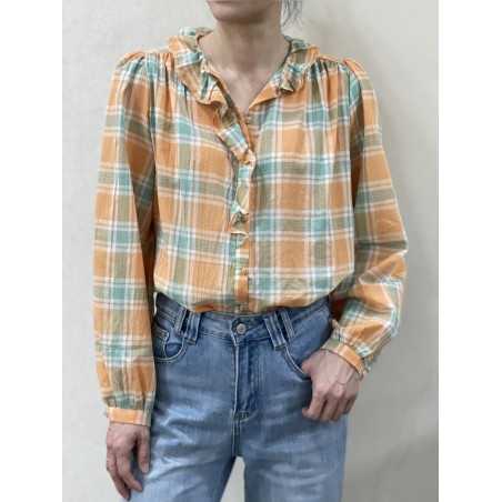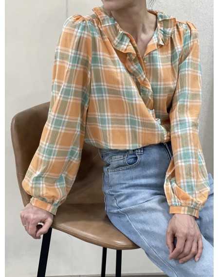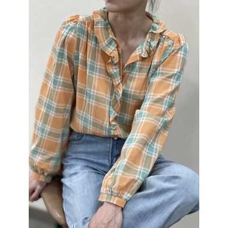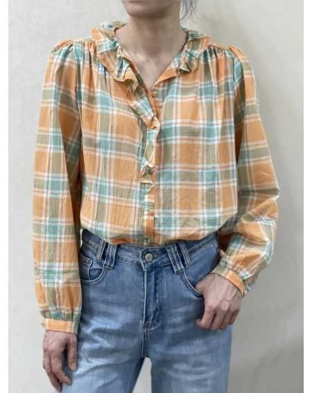 - Chemise a carreaux avec col a volant.