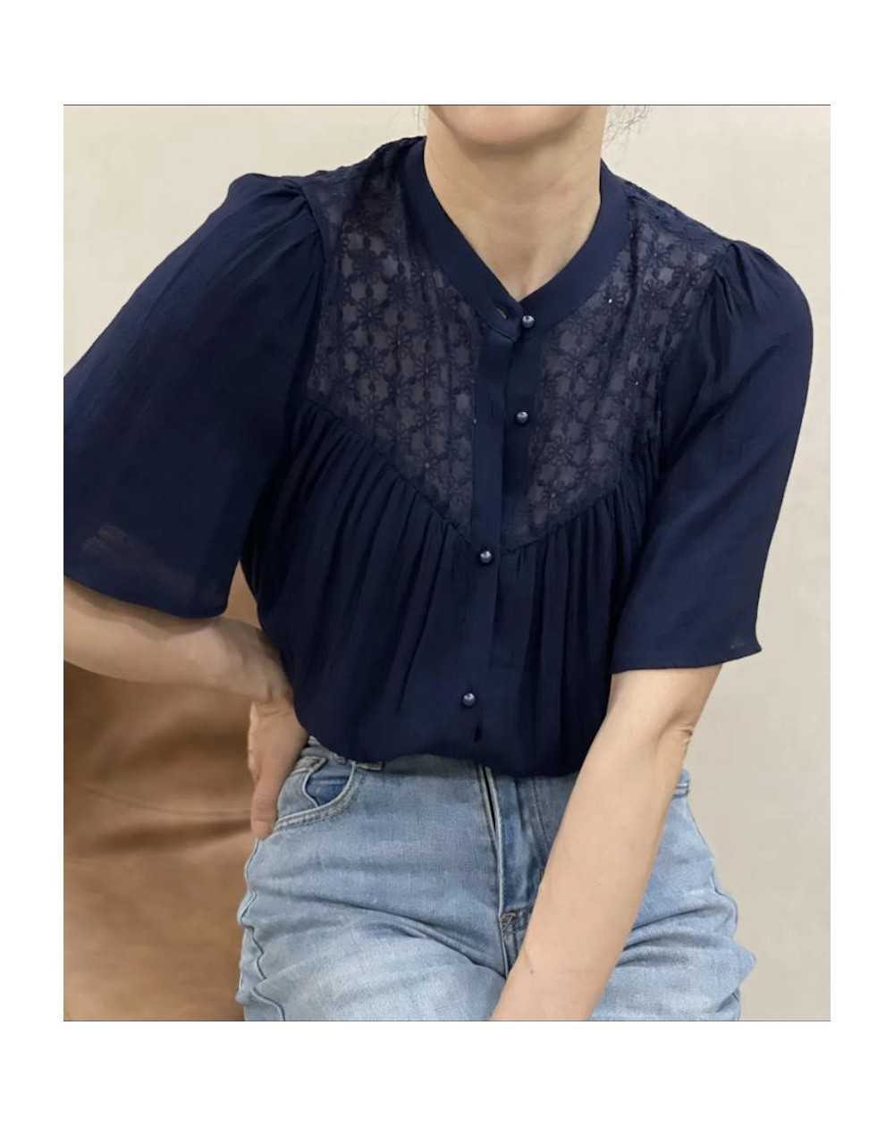 - Chemise manches courtes avec dentelle au dessus de la poitrine.