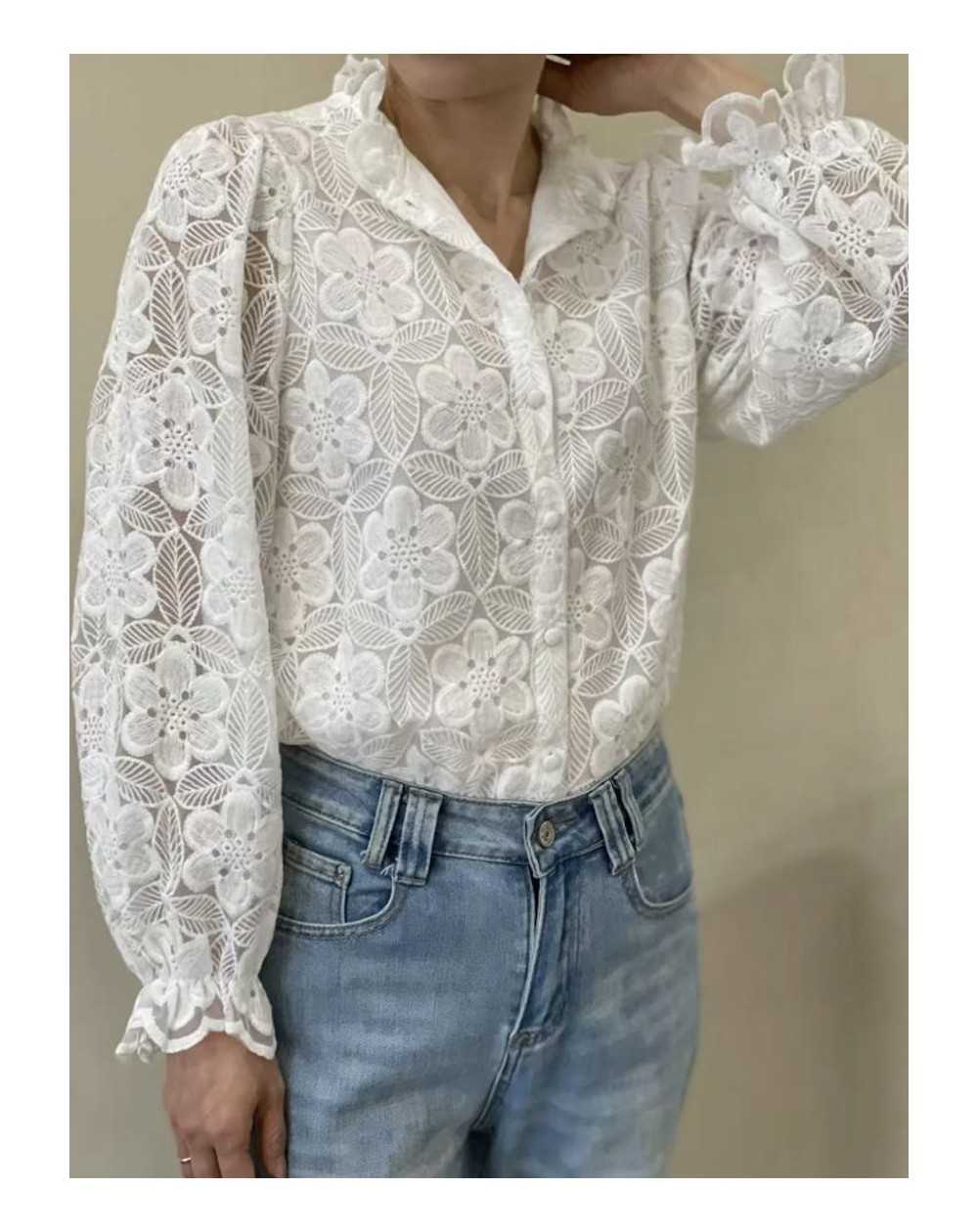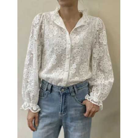 - Chemise en dentelle, fermeture bouton ton sur ton
