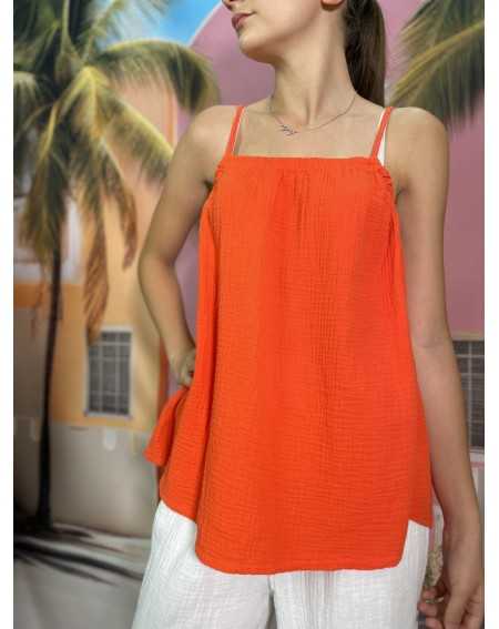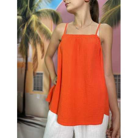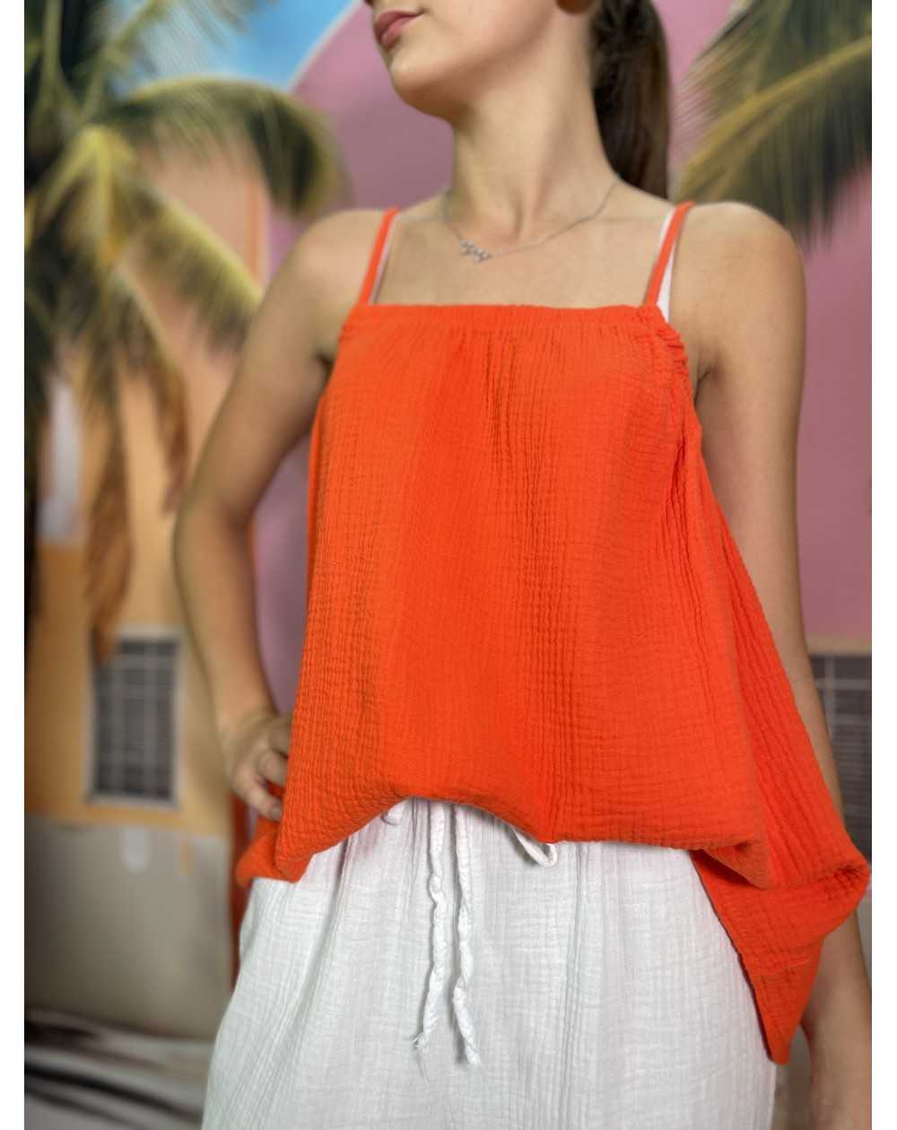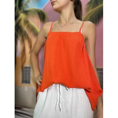 Léger, doux et respirant, ce débardeur en gaze de coton est un indispensable de la saison. Sa matière naturellement froissée lui donne un charme bohème et décontracté, idéal pour les journées ensoleillées. Facile à porter seul ou superposé, il allie confort et style en toute simplicité.