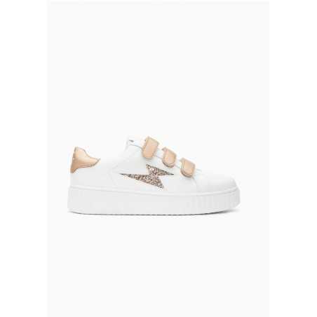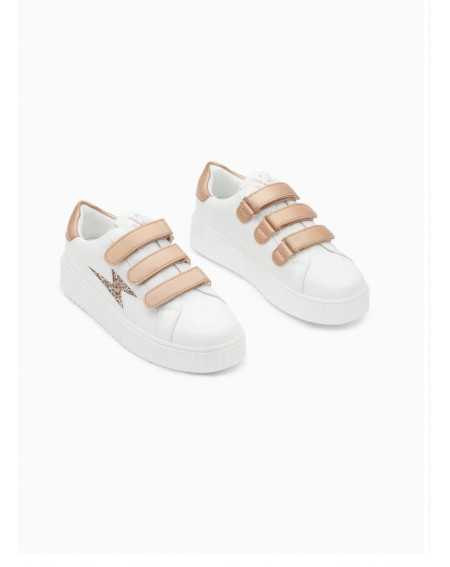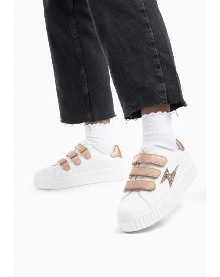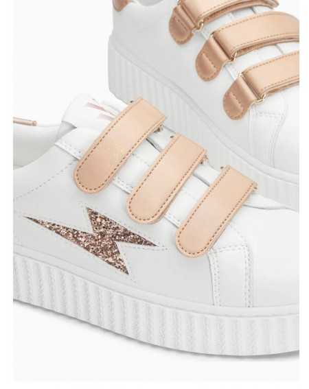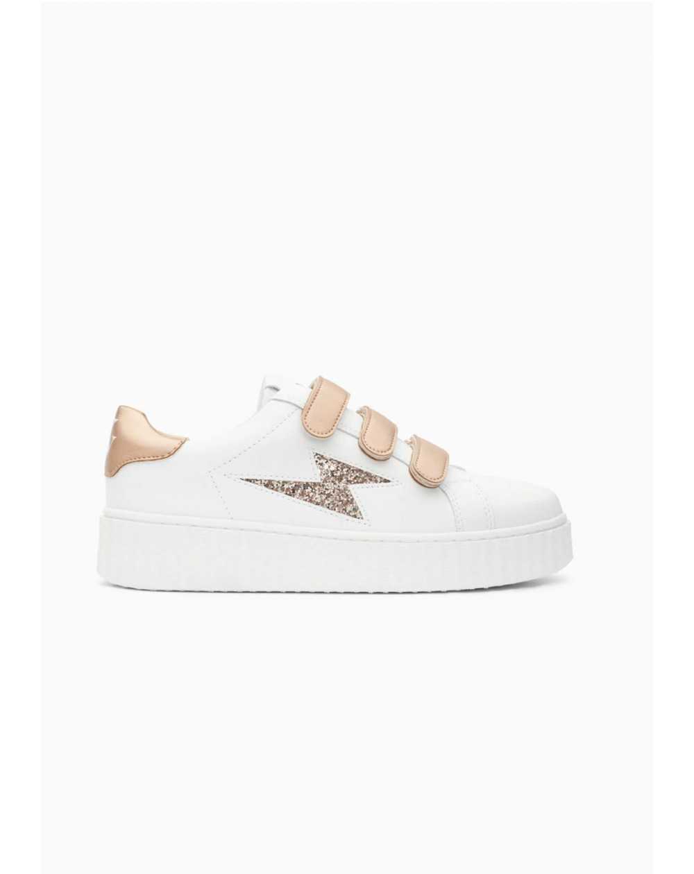 - Baskets en similicuir blanc