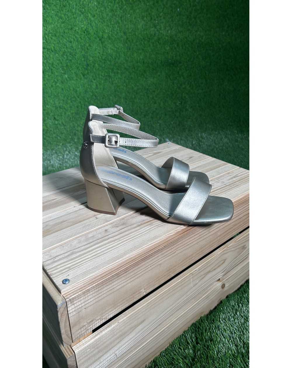 Sandales à talon au style élégant et minimaliste, idéales pour compléter une tenue habillée ou estivale.