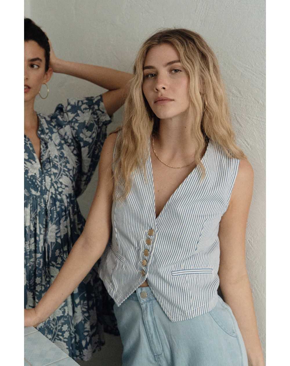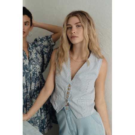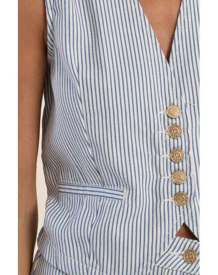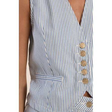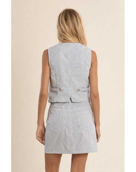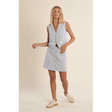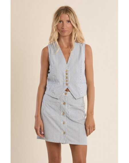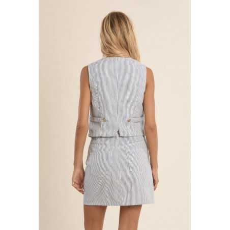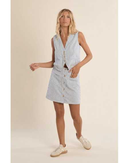 -Mini-jupe rayée -Coupe droite -Taille haute -Poches plaquées -Fermeture par boutons sur toute la longueur devant -Longueur côté 48cm pour une...