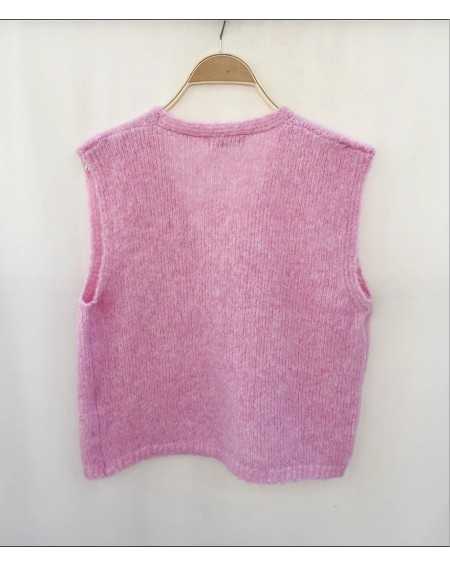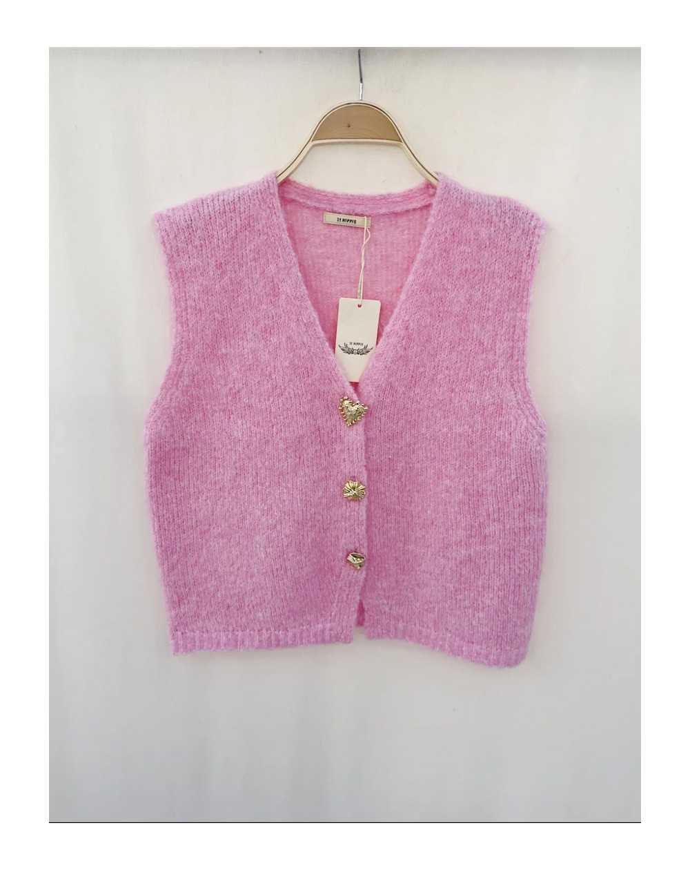 - Gilet sans manches, fermeture par trois boutons a motif