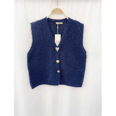 - Gilet sans manches, fermeture par trois boutons a motif