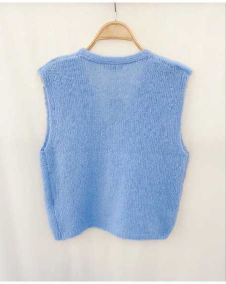 - Gilet sans manches, fermeture par trois boutons a motif