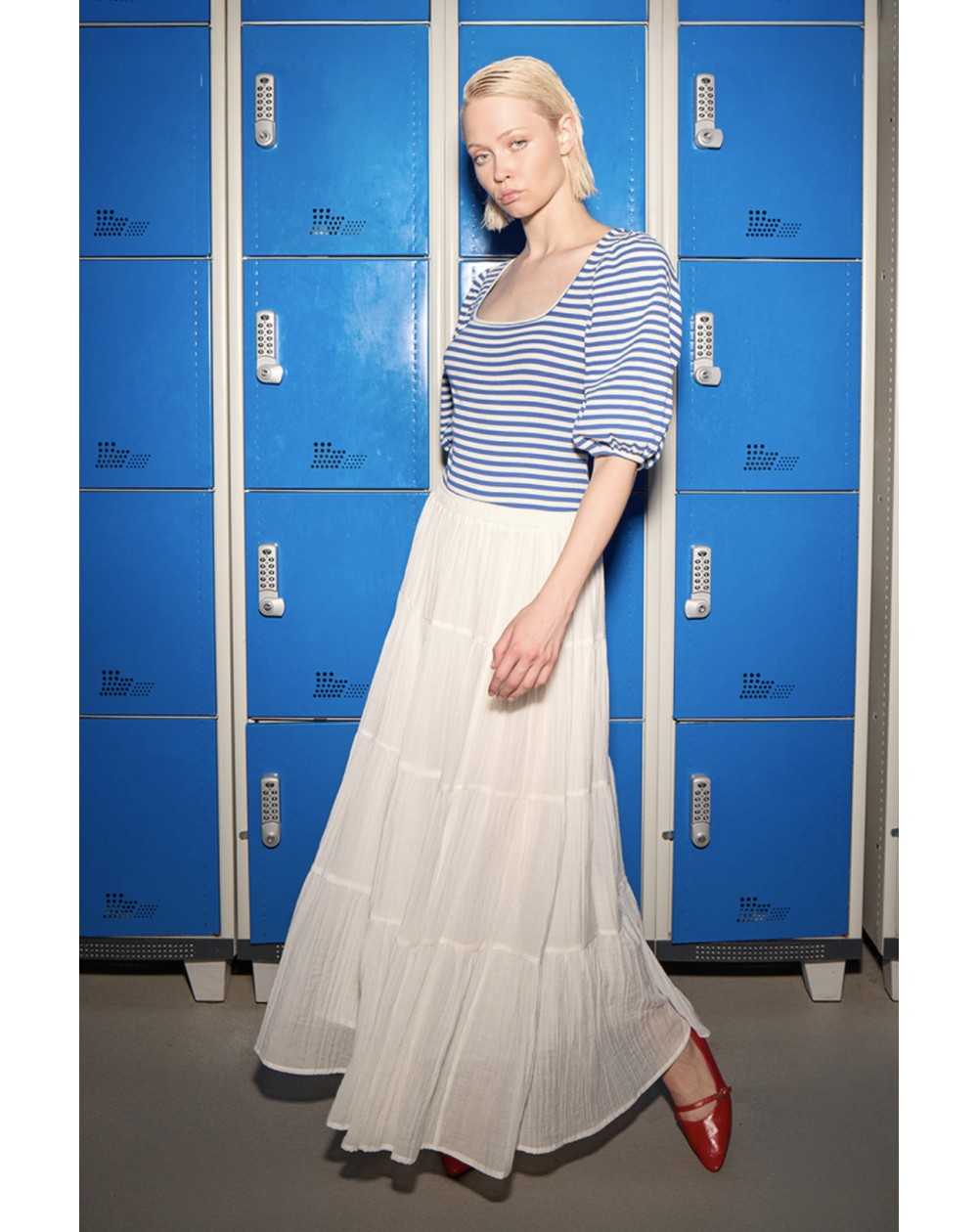 -Jupe longue -Taille haute élastiquée -Multi-volants -Doublée -Longueur depuis le côté 93cm pour une taille S
