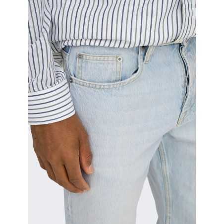 Jean droit intemporel au délavage clair, facile à porter au quotidien. Son denim équilibré assure confort et tenue, pour un look lumineux et polyvalent, adapté à toutes les occasions.