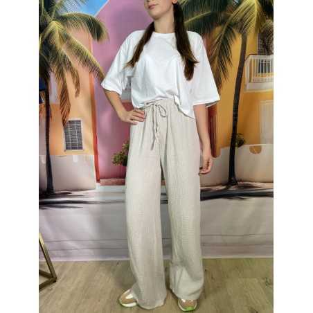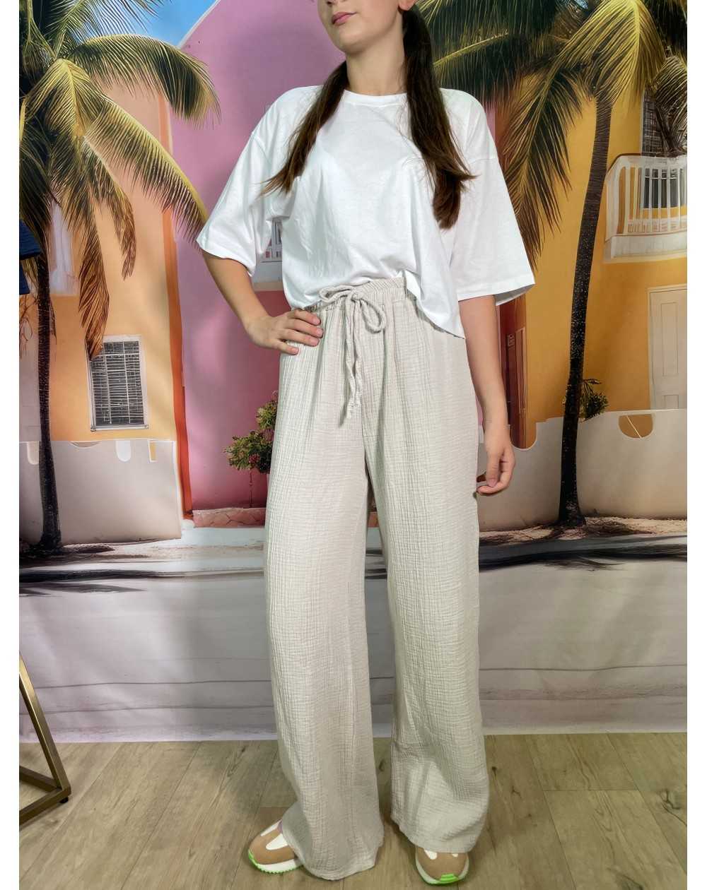 Ajoutez une touche de confort et d’élégance à votre tenue avec ce pantalon en gaze de coton. Léger et fluide, il est parfait pour les journées ensoleillées comme pour les soirées décontractées.