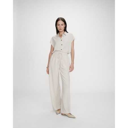 RAVEN est un pantalon long à la coupe droite.Doté d'une taille haute élastiquée avec cordon de serrage, il mise sur le confort et une silhouette décontractée.