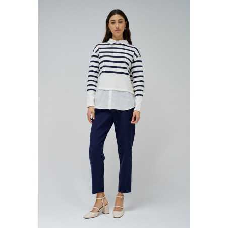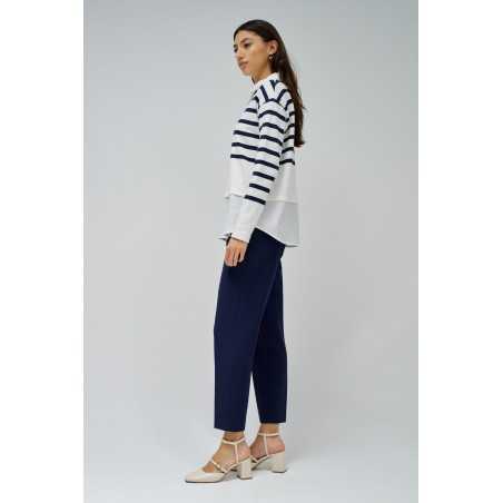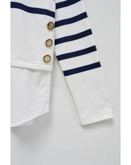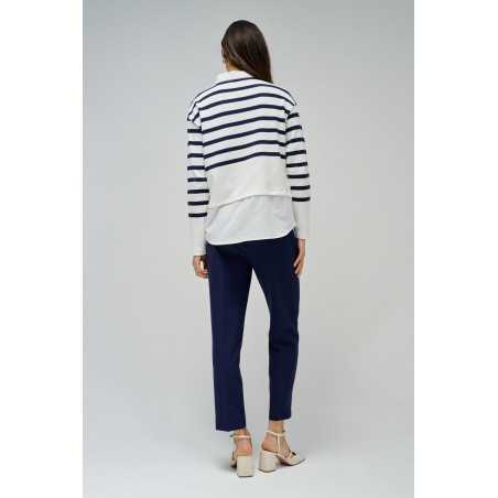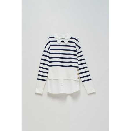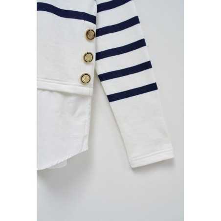Ce pull combiné est un choix élégant pour ceux qui recherchent une touche de sophistication. Avec une coupe régulière et un col rond, il offre confort et style. Les boutons dorés ajoutent une finition raffinée, en faisant un choix parfait pour diverses occasions. Idéal pour des tenues à la fois formelles et décontractées, cette pièce est polyvalente et pleine de charme.