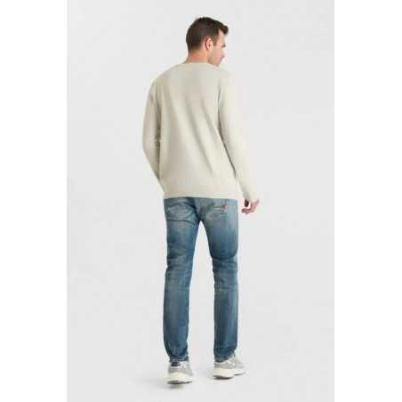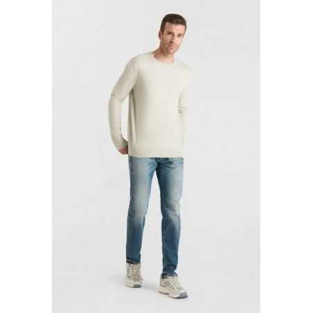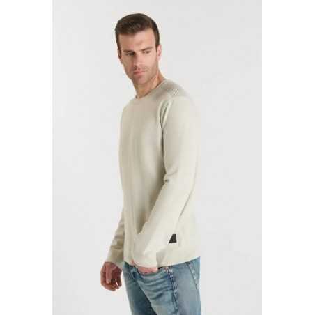 Pull Nardi crème en maille fine, rehaussé de détails fantaisie au niveau des épaules pour une touche élégante. Doux et confortable, il adopte une coupe droite et un col rond, parfait pour un style city moderne.