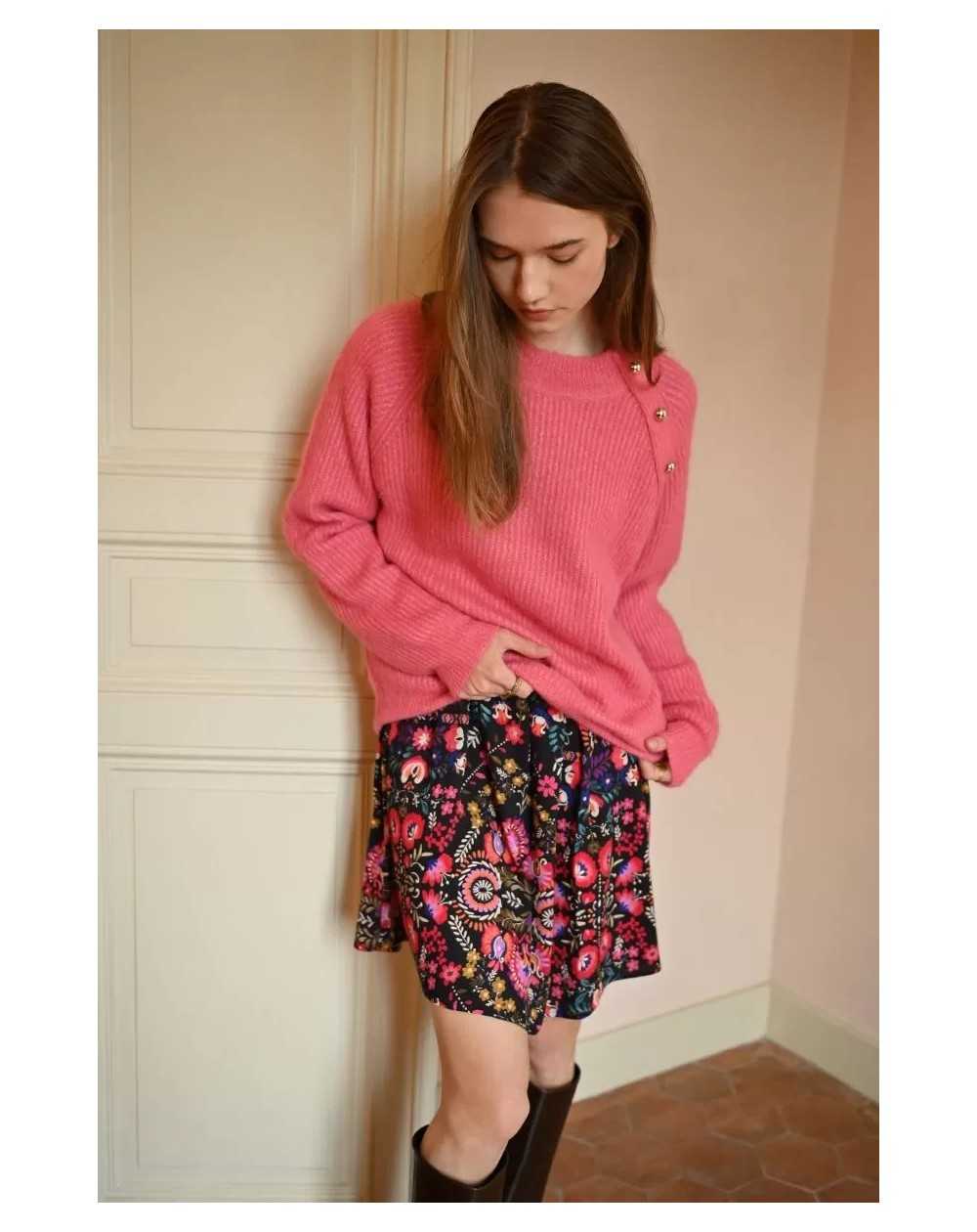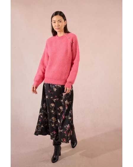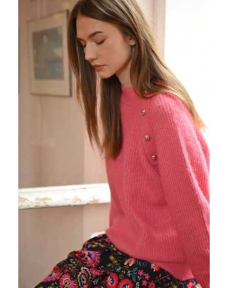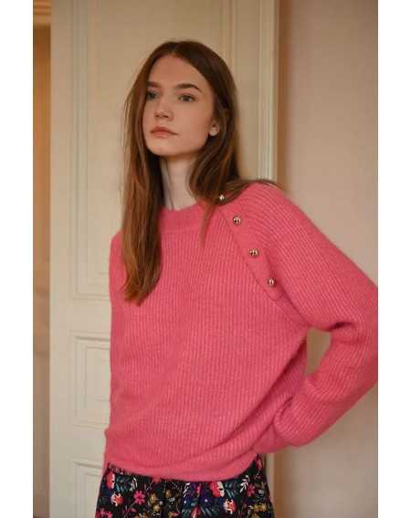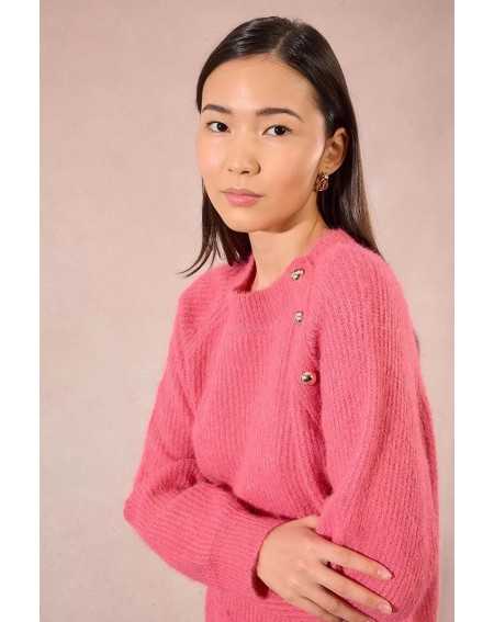 Un pull intemporel rehaussé de détails élégants : sa patte de boutonnage à l’épaule avec boutons métalliques lui donne une touche raffinée, tandis que les poignets retroussés ajoutent une note casual. Un essentiel revisité.