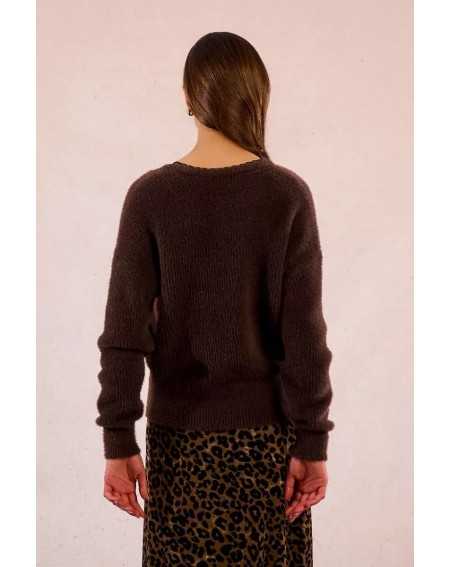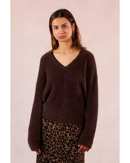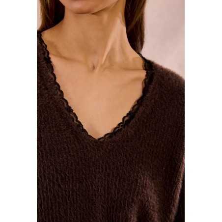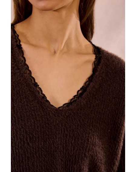 Pull en maille duveteuse à encolure V dentelle E1190DN Molly Bracken