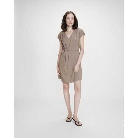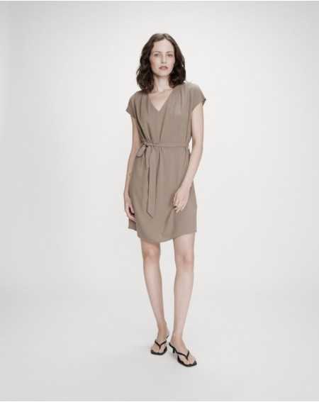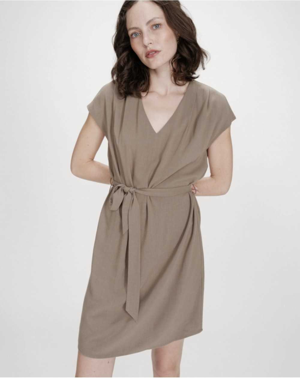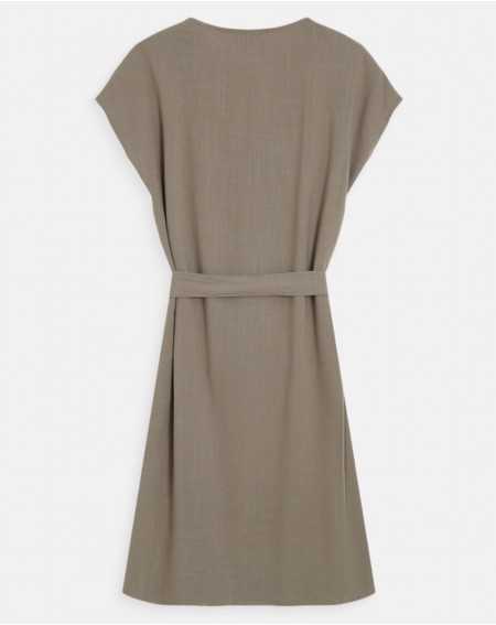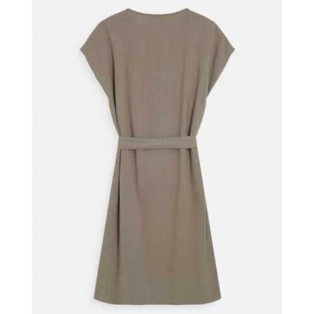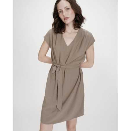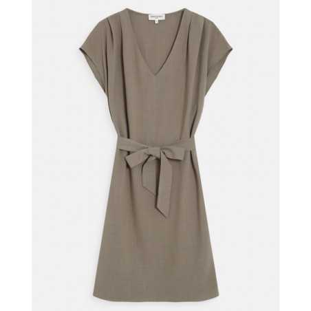 MARILOU est une robe courte à l'encolure en V et aux manches courtes.Sa ceinture amovible permet de structurer la silhouette tout en conservant une allure simple et élégante.