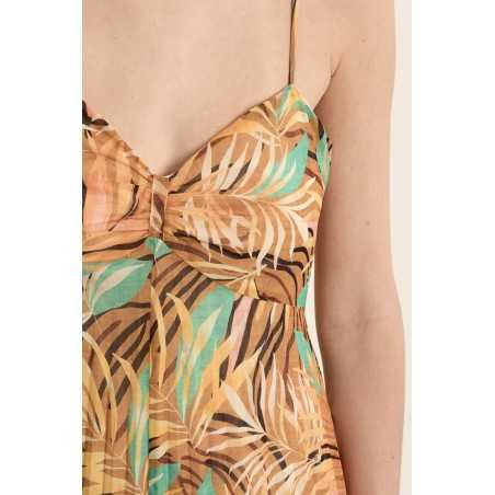 "-Robe longue plissée, imprimée -Fines bretelles réglables -Col croisé -Longue jupe aux multiples volants -Doublée -Longueur depuis l'épaule 124 cm pour une taille S "
