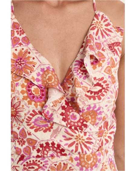 -Décolleté en V croisé, réhaussé de bandes volantées