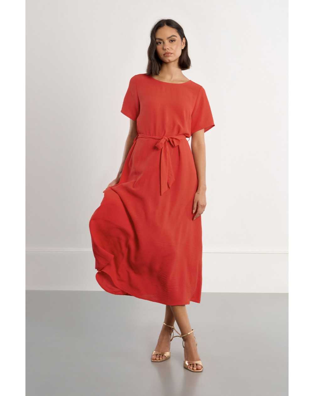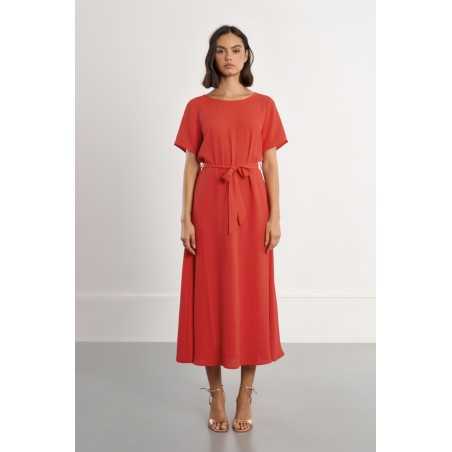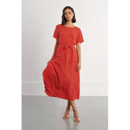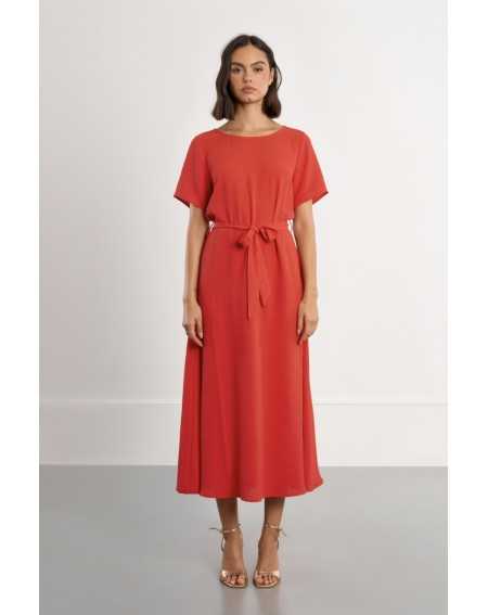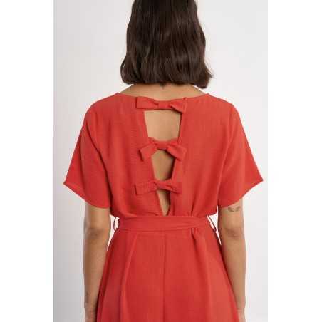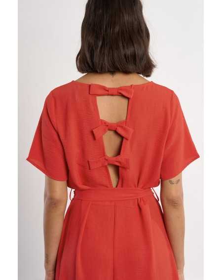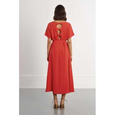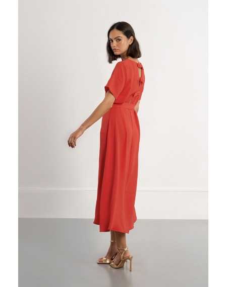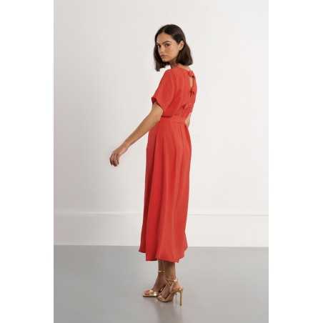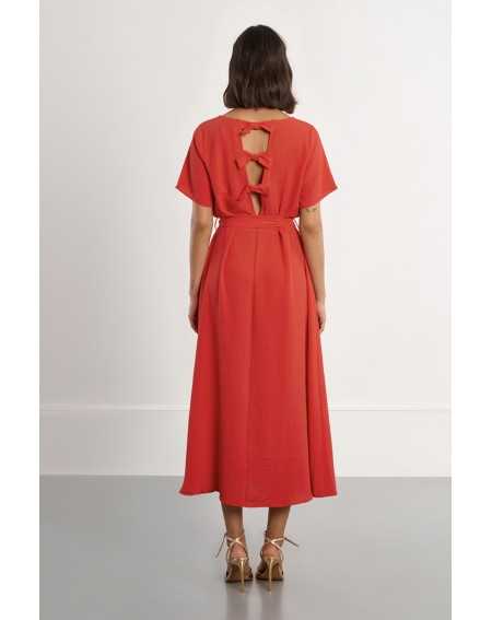 -Robe longue, ceinture à nouer -Manches courtes -Encolure bateau -Ouverture au dos, nœuds décoratifs -Coupe droite -Longueur depuis l'épaule 127cm pour une taille S