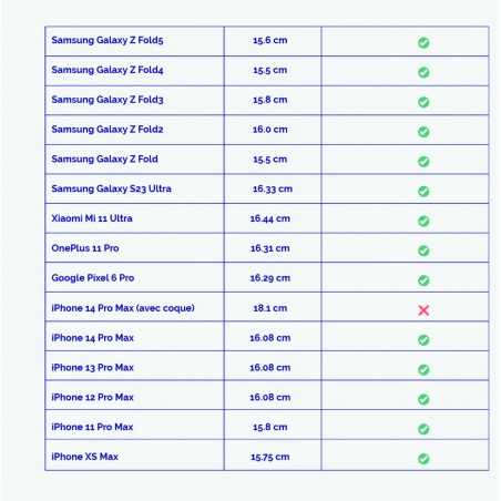 Glissez-y un téléphone : 18cm de hauteur maximum