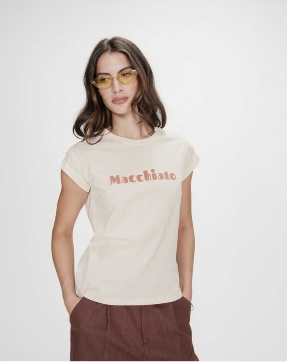 -shirt 100% coton à manches courtes avec un message imprimé en velours inspiré de l'art de vivre à l'italienne.