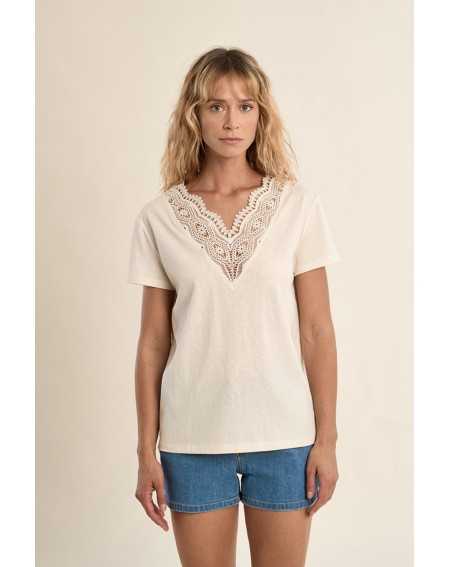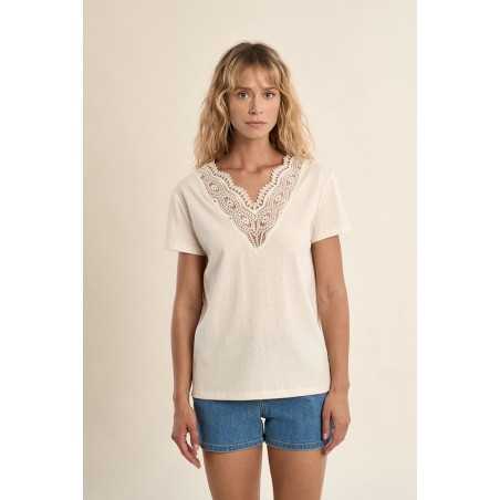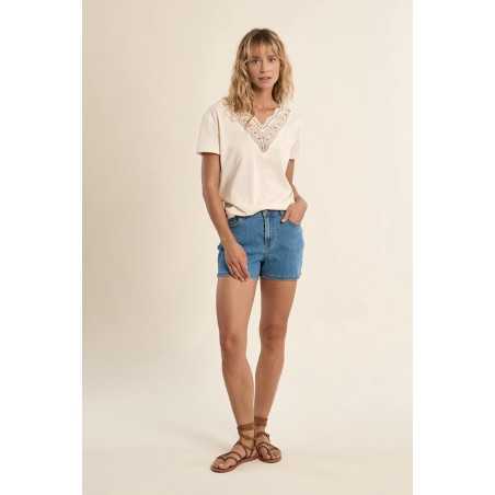 T-shirt col V en broderie MOLLY BRACKEN