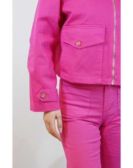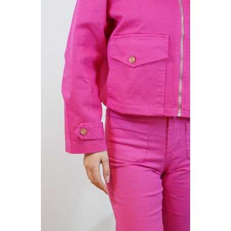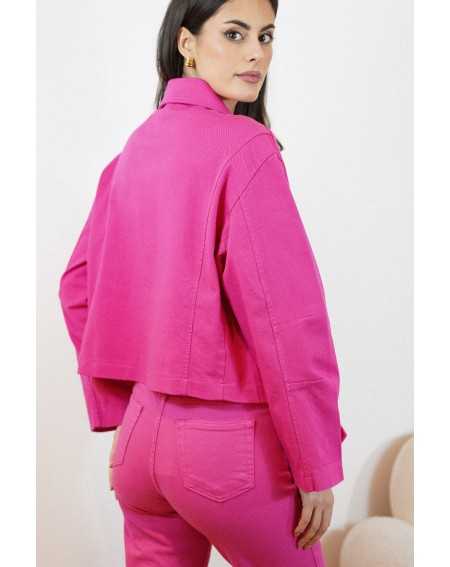 Veste courte au style moderne et structuré. Sa coupe légèrement ample, sa fermeture zippée et ses poches à rabat lui apportent une touche casual tendance.