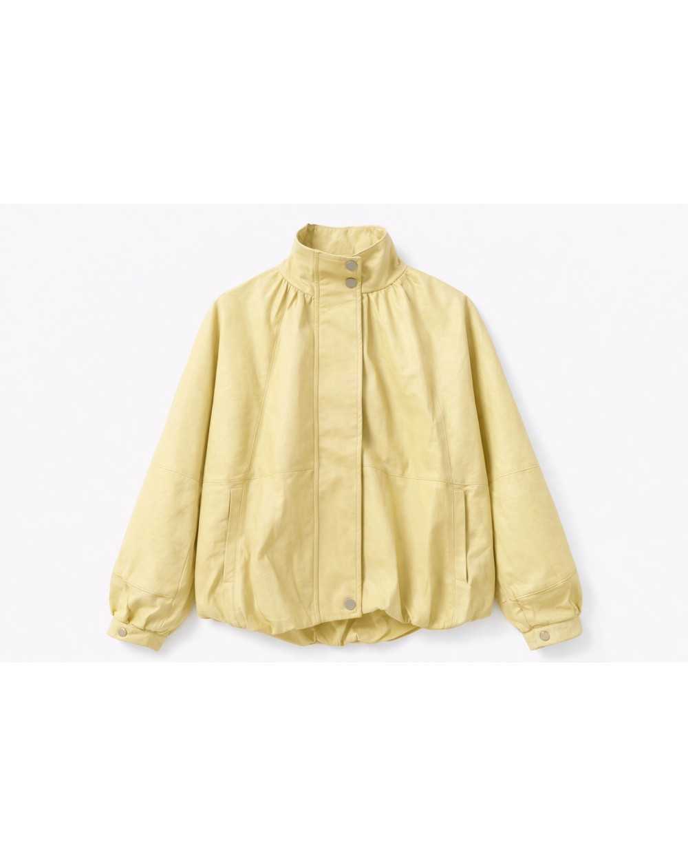 Veste à l’allure moderne et enveloppante. Sa coupe ample, son col montant et ses manches légèrement bouffantes apportent une silhouette structurée et contemporaine, idéale pour la mi-saison.